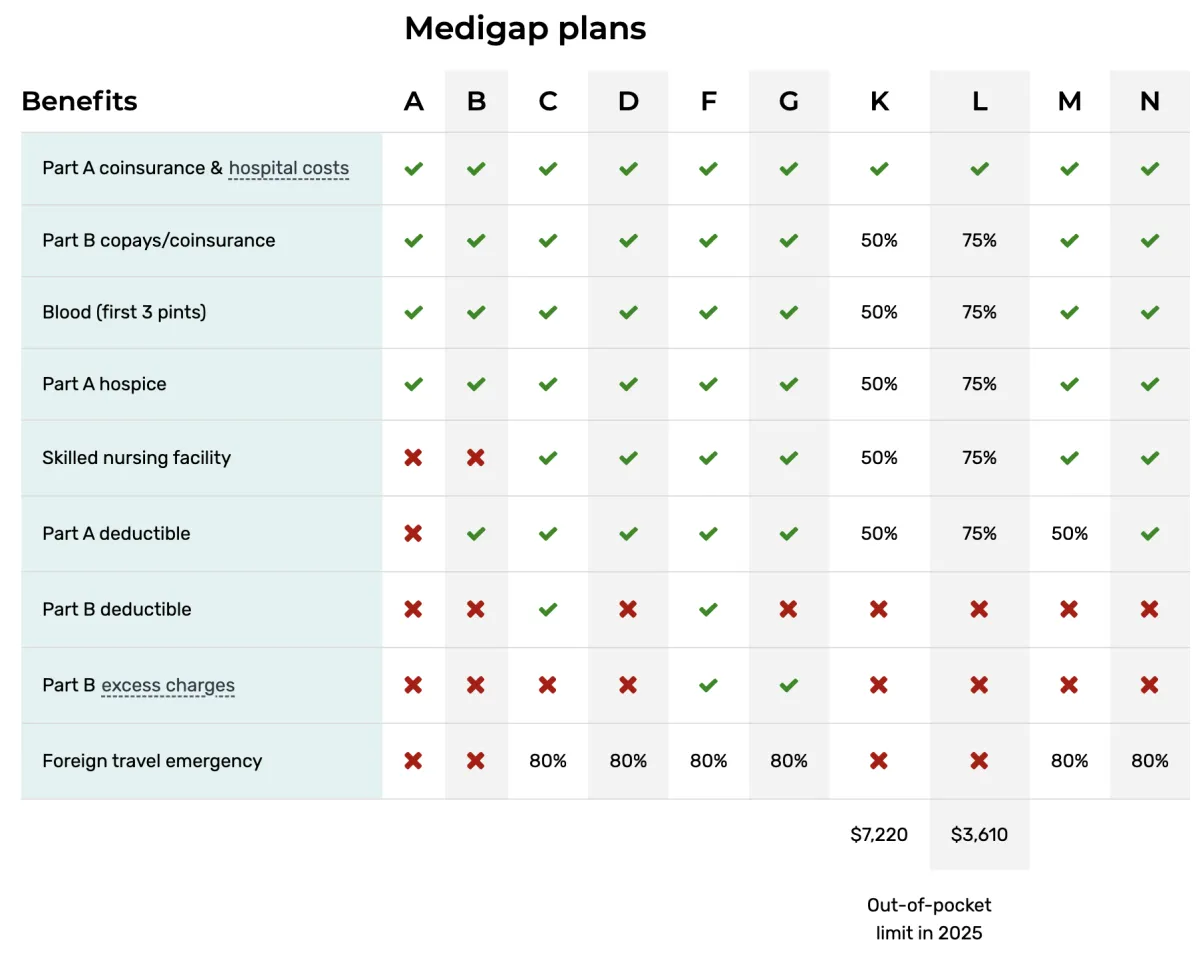 Compare the benefits of each lettered plan to help you find one that meets your needs now and in the future. You might not be able to switch Medigap policies later.