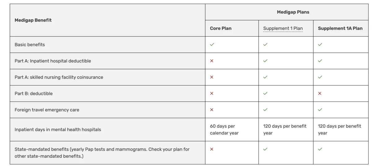 Insurance companies can add more coverage to the Medigap policy. You may choose any or all of these options to design a Medigap policy that meets your needs: